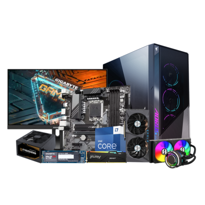 The Intel 13th Gen Core i7 13700K GIGABYTE Special Gaming Desktop PC is powered by the Intel 13th Gen Core i7 13700K Raptor Lake Processor, providing unparalleled performance for gaming. Paired with the GIGABYTE B760M DS3H AX mATX Motherboard, the PC offers cutting-edge features and connectivity. With 16GB of Kingston FURY Beast 6000MHz DDR5 RGB Desktop RAM, multitasking is seamless, ensuring smooth gameplay and efficient multitasking. The GIGABYTE 1TB M.2 PCIe NVMe SSD delivers lightning-fast storage. The Desktop PC is equipped with the GIGABYTE GeForce RTX 3060 EAGLE 12G 12GB GDDR6 Graphics Card for stunning visuals and smooth frame rates in the latest games. The system is powered by the reliable GIGABYTE P650B 650W 80 Plus Bronze Certified Non-Modular Power Supply. All these componets are housed in the stylish GIGABYTE Aorus C500 Glass Mid Tower Micro ATX Casing. To ensure optimal CPU cooling, the Lian Li Galahad 240mm Closed-Loop AIO Liquid CPU Cooler (Black) effectively dissipates heat. For an enhanced gaming experience, the setup comes with the GIGABYTE G24F 2 23.8" 180Hz Full HD IPS Gaming Monitor, offering smooth visuals and immersive gameplay.