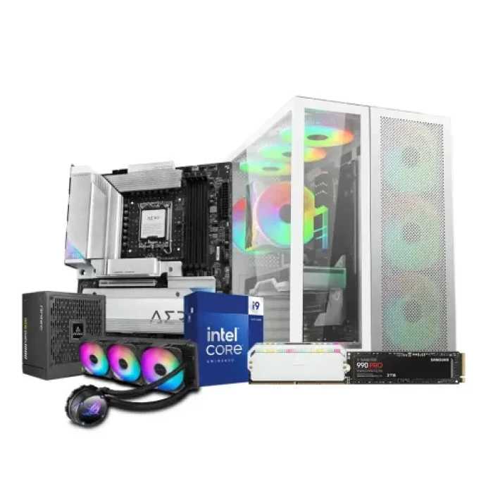 The Intel 14th Gen Core i9 14900K Desktop PC is the ideal gaming machine. This PC boasts lightning-fast speed and flawless multitasking thanks to the newest Raptor Lake Core i9 14900K Processor. The GIGABYTE Z790 AERO G 13th & 12th Gen ATX Motherboard delivers steady and consistent performance, while the CORSAIR DOMINATOR PLATINUM RGB DDR5 32GB DDR5 5600MHz CL40 Desktop RAM gives enough memory for even the most demanding games and programs. The Value-Top T5 Custom Premium Extended XXL E-ATX Gaming Tower Casing offers plenty of space for additional components and cooling solutions, while the Asus ROG STRIX LC II ARGB 360MM CPU Cooler keeps your processor running cool and quiet. The Samsung 990 Pro 2TB PCIe 4.0 M.2 NVMe SSD provides lightning-fast storage, and the Antec HCG 1000 Gold Fully Modular Power Supply ensures stable and efficient power delivery. With this PC, you'll be able to take your gaming to the next level and experience the ultimate in performance and reliability.
